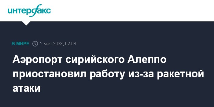 Аэропорт сирийского Алеппо приостановил работу из-за ракетной атаки