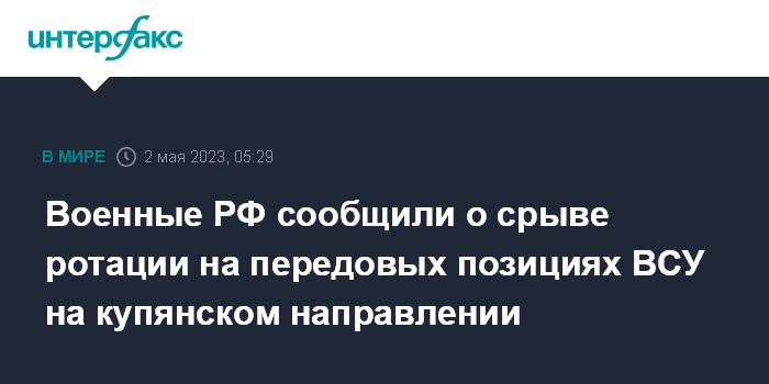 Москва. 2 мая. INTERFAX.RU - Российские военные заявили, что сорвали попытки ротации подразделений ВСУ на передовых позициях на купянском направлении.