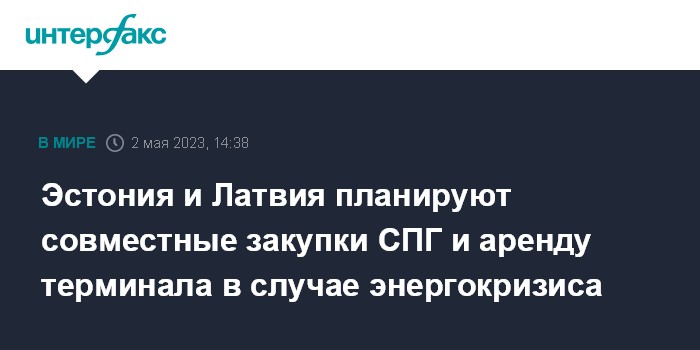 Москва. 2 мая. INTERFAX.RU - Эстония и Латвия могут организовать совместные закупки сжиженного природного газа и солидарно арендовать мощности строящегося в эстонском порту Палдиски СПГ-терминала.