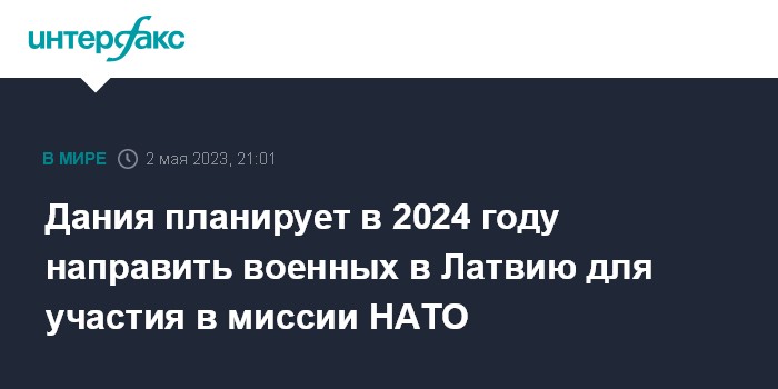 Москва. 2 мая. INTERFAX.RU - Дания собирается в следующем году отправить в Латвию батальон для сил НАТО, заявили во вторник в датском Минобороны.