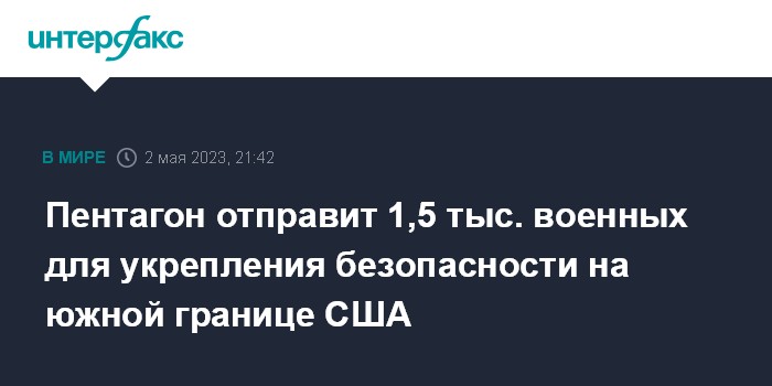 Москва. 2 мая. INTERFAX.RU - Глава Минобороны США Ллойд Остин дал разрешение на отправку 1,5 тыс. военнослужащих на южную границу США с целью оказать содействие американским пограничникам в их работе.
