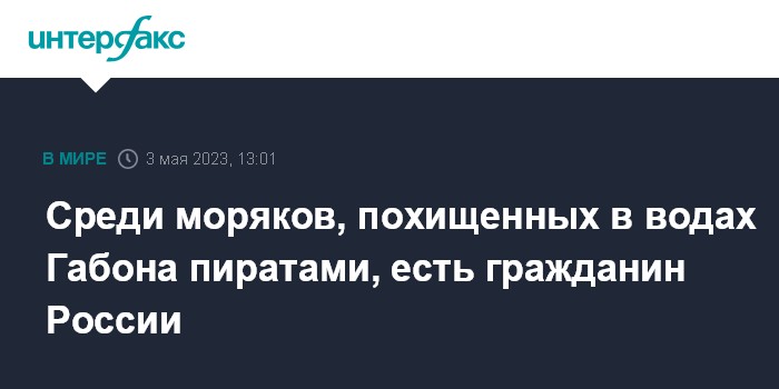 Москва. 3 мая. INTERFAX.RU - Вместе с грузинскими моряками в территориальных водах Габона пираты похитили и гражданина России - капитана судна, сообщил журналистам председатель профсоюза моряков Грузии Анатолий Чиджавадзе.