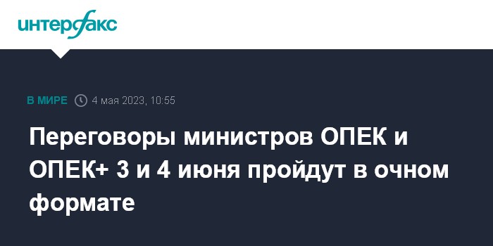 Москва. 4 мая. INTERFAX.RU - Встреча министров альянса ОПЕК+, назначенная на 4 июня, состоится в очном формате, сообщили "Интерфаксу" несколько делегатов.