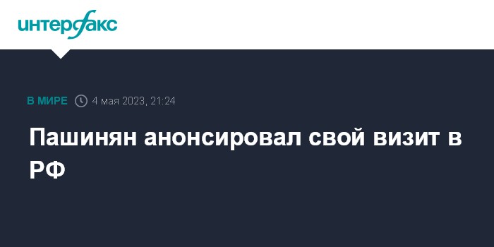 Москва. 4 мая. INTERFAX.RU - Премьер-министр Армении Никол Пашинян сообщил, что посетит РФ.