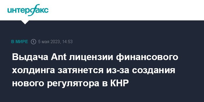 Выдача Ant лицензии финансового холдинга затянется из-за создания нового регулятора в КНР