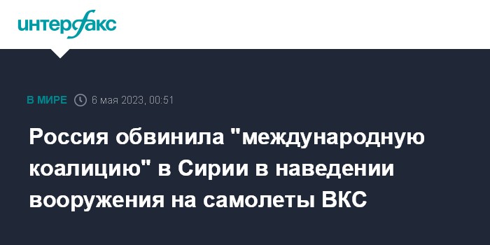 Москва. 5 мая. INTERFAX.RU - Российские военные обвинили возглавляемую США коалицию в систематическом нарушении протоколов деконфликтации и двухстороннего российско-американского меморандума по безопасности полетов в Сирии.