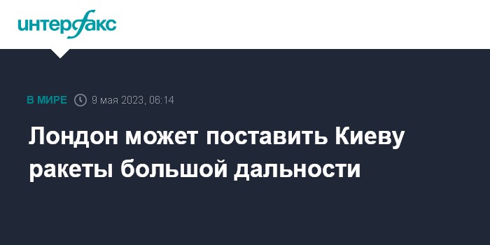 Москва. 9 мая. INTERFAX.RU - Великобритания, вероятно, готовит поставку Украине ракет большой дальности, сообщила газета The Washington Post.