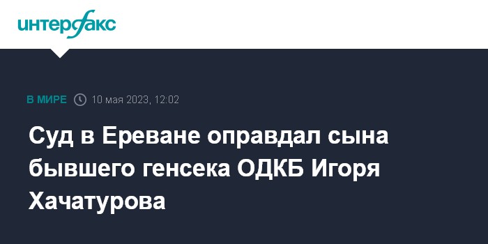 Москва. 10 мая. INTERFAX.RU - Суд в Ереване оправдал Игоря Хачатурова, сына бывшего генсека ОДКБ Юрия Хачатурова по делу о применении насилия против полицейского, сообщают армянские СМИ. Оправдательное решение зачитала судья Татевик Григорян.