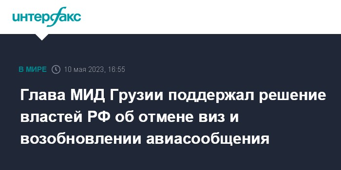 Ранее в среду был опубликован указ президента РФ, согласно которому Россия с 15 мая 2023 года отменяет визовый режим для граждан Грузии, за исключением лиц, въезжающих в РФ с целью трудовой деятельности.