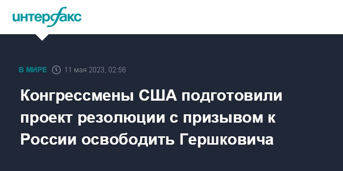 Москва. 11 мая. INTERFAX.RU - Члена Палаты представителей конгресса США представили проект резолюции с призывом освободить задержанного в России американского журналиста The Wall Street Journal Эвана Гершковича.