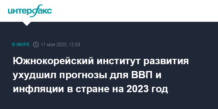 Южнокорейский институт развития ухудшил прогнозы для ВВП и инфляции в стране на 2023 год