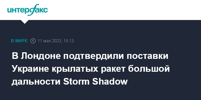 "Я принял решение снабдить Украину оружием большего радиуса действия (...) Я могу подтвердить, что Великобритания передает Украине ракеты Storm Shadow. Это ракеты дальнего действия", - сказал он, выступая в Палате общин.