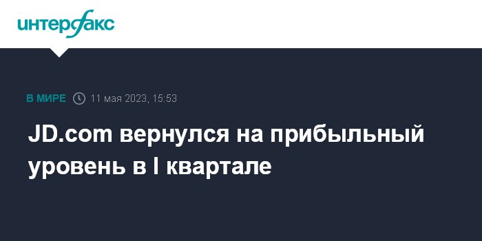 Москва. 11 мая. INTERFAX.RU - Китайский интернет-ритейлер JD.com вернулся на прибыльный уровень в первом квартале 2023 года, выручка превзошла ожидания аналитиков.