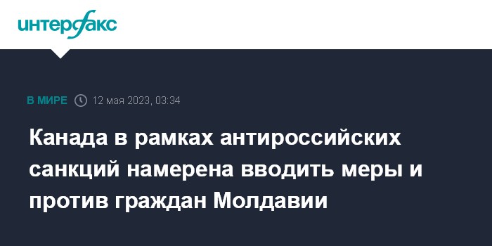 Москва. 12 мая. INTERFAX.RU - Канада намерена внести изменения в закон, регламентирующий введение антироссийских санкций из-за конфликта на Украине, чтобы иметь возможность вводить ограничительные меры и в отношении юридических и физических лиц из Молдавии, сообщила пресс-служба канадского премьера.