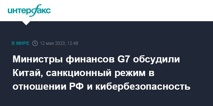Министры финансов G7 обсудили Китай, санкционный режим в отношении РФ и кибербезопасность