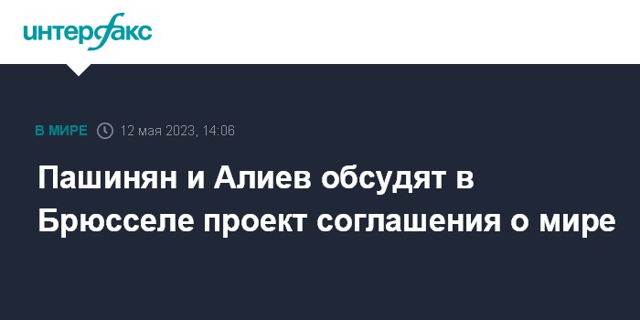 Москва. 12 мая. INTERFAX.RU - Премьер-министр Армении Никол Пашинян и президент Азербайджана Ильхам Алиев на предстоящей в Брюсселе 14 мая встрече обсудят проект соглашения о мире, сообщил замглавы МИД Армении Паруйр Ованнисян.