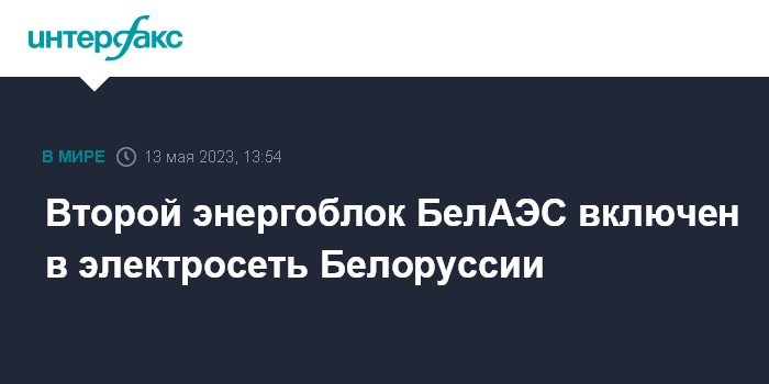 "13 мая 2023 года в 13:24 в рамках этапной программы энергетического пуска состоялось первое включение в сеть второго энергоблока БелАЭС: он выдал в объединенную энергосистему страны первые киловатт-часы электроэнергии", - говорится в сообщении пресс-службы Минэнерго.