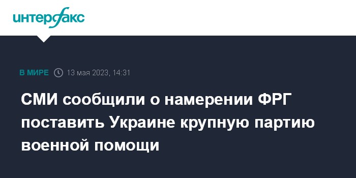 Москва. 13 мая. INTERFAX.RU - Германия готовится направить на Украину в ближайшие месяцы очередную партию вооружений на сумму 2,7 млрд евро, сообщает в субботу западная пресса со ссылкой на министерство обороны страны.