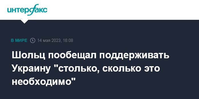 Москва. 14 мая. INTERFAX.RU - Канцлер ФРГ Олаф Шольц пообещал президенту Украины Владимиру Зеленскому, что Берлин будет поддерживать Киев "столько, сколько это необходимо", передают в воскресенье западные СМИ.