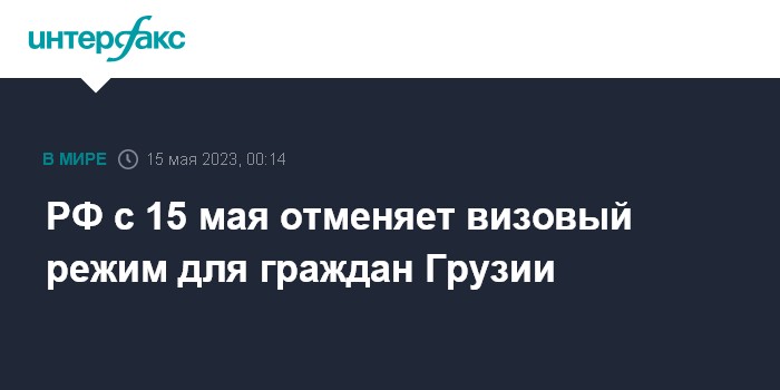 Документ устанавливает, что "с 15 мая 2023 года граждане Грузии осуществляют въезд в РФ и выезд из РФ без оформления виз на основании действующих документов, удостоверяющих личность".