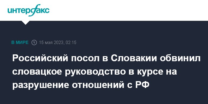 Москва. 15 мая. INTERFAX.RU - Братислава взяла курс на разрушение отношений с Москвой и принимает активное участие в вооружении Киева, заявил посол РФ в Словакии Игорь Братчиков в интервью, опубликованном в понедельник в газете "Известия".