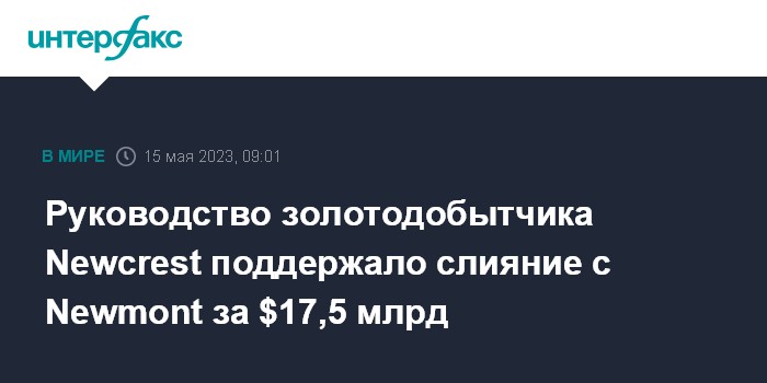 Москва. 15 мая. INTERFAX.RU - Совет директоров австралийской Newcrest Mining Ltd. единогласно рекомендовал акционерам принять предложение американской золотодобывающей корпорации Newmont Corp. о покупке компании.