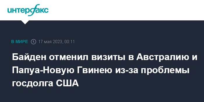"Байден отменяет свои запланированные визиты в Папуа - Новую Гвинею и Австралию на фоне переговоров о потолке госдолга", - заявил источник, знакомый с планами американского президента.