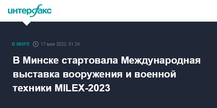 Москва. 17 мая. INTERFAX.RU - В Минске стартовала Международная выставка вооружения и военной техники MILEX-2023, где Россия представит около 700 образцов вооружения и спецсредств от 17 компаний-производителей.