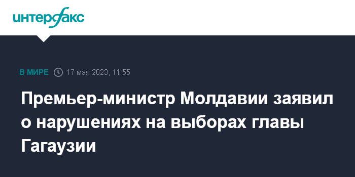 Москва. 17 мая. INTERFAX.RU - В ходе выборов главы (башкана) Гагаузской автономии были выявлены проблемы и нарушения, они задокументированы и будут переданы в суд, заявил на заседании правительства премьер-министр Молдавии Дорин Речан.