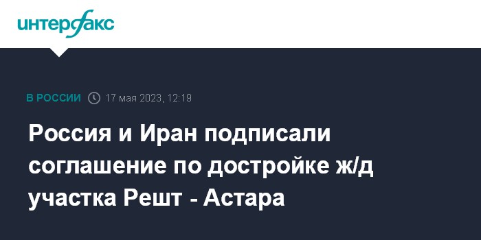 В марте первый замглавы ОАО "РЖД" Сергей Павлов говорил, что в компании ждут, что соглашение о достройке дороги будет подписано до конца 2023 года. По его словам, Минтранс России готовил два межправсоглашения: Иран-Россия и трехстороннее Азербайджан-Россия-Иран.