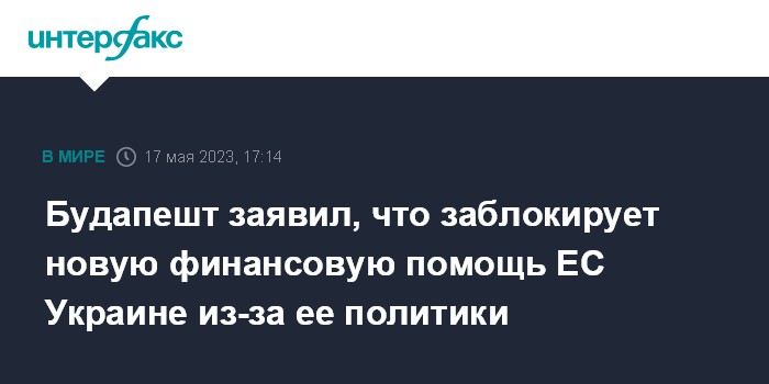 Будапешт заявил, что заблокирует новую финансовую помощь ЕС Украине из-за ее политики