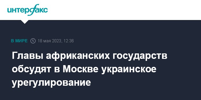 Москва. 18 мая. INTERFAX.RU - Делегация глав африканских государств прибудет в Москву для обсуждения мирного плана по Украине, cообщил пресс-секретарь президента Дмитрий Песков.