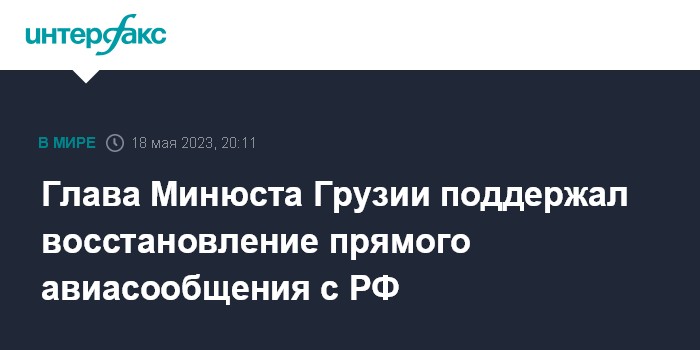Москва. 18 мая. INTERFAX.RU - Министр юстиции Грузии Рати Брегадзе заявил, что не видит ничего плохого в восстановлении прямого авиасообщения с Российской Федерацией.