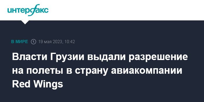 Москва. 19 мая. INTERFAX.RU - Агентство гражданской авиации Грузии выдало разрешение на осуществление полетов еще одной российской авиакомпании - Red Wings, сообщило ведомство в пятницу.