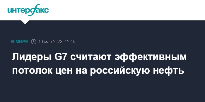 Москва. 19 мая. INTERFAX.RU - Лидеры стран-членов "группы семи" считают, что введенные ими ограничения на цену российской нефти приносят положительные результаты, говорится в их совместном заявлении, опубликованном в пятницу.