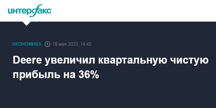 Москва. 19 мая. INTERFAX.RU - Крупнейший в мире производитель сельскохозяйственного оборудования Deere & Co. во втором квартале 2023 финансового года (февраль-апрель) увеличил чистую прибыль на 36%, выручку - на 30%.