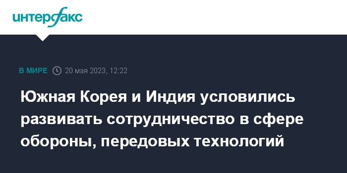 Москва. 20 мая. INTERFAX.RU - Президент Южной Кореи Юн Сок Ёль и премьер Индии Нарендра Моди в субботу условились наращивать сотрудничество двух государств в сфере обороны и перспективных технологий.