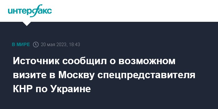 В марте Китай представил свой план по украинскому урегулированию. Глава МИД КНР Цинь Ган заявил, что оно возможно только на основе мирных переговоров и с учетом озабоченностей всех заинтересованных сторон. Позднее стало известно, что Ли Хуэй с 15 мая совершит поездки в РФ, на Украину, в страны Европы для обсуждения урегулирования ситуации вокруг Украины.