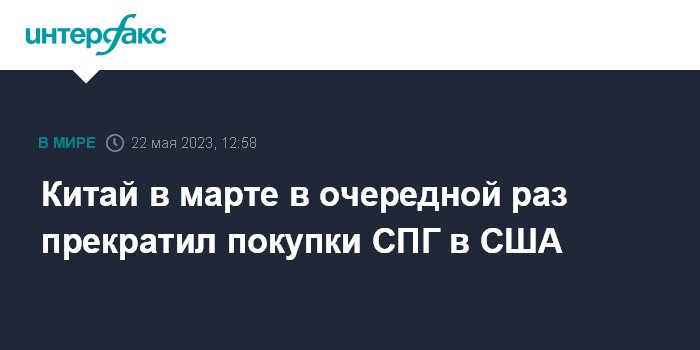 Москва. 22 мая. INTERFAX.RU - Китай в марте 2023 года почти полностью прекратил импорт сжиженного природного газа из США.