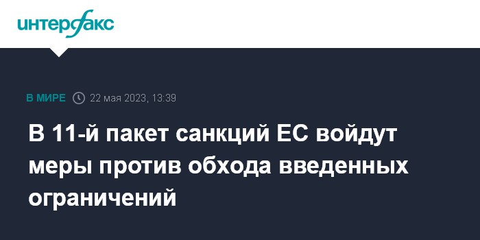 В 11-й пакет санкций ЕС войдут меры против обхода введенных ограничений