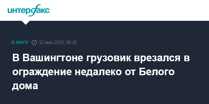 Москва. 23 мая. INTERFAX.RU - В центре Вашингтона вечером в понедельник грузовик компании U-Haul врезался в ограждение неподалеку от Белого дома, сообщает местное отделение NBC.