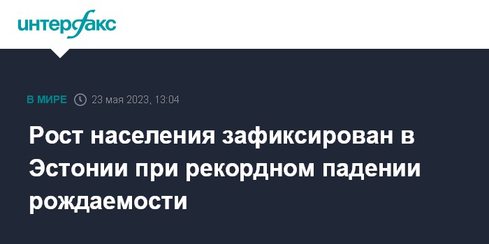 Москва. 23 мая. INTERFAX.RU - Население Эстонии в 2022 году при рекордном падении рождаемости выросло на 2,6 процента, что произошло за счет иммиграции.