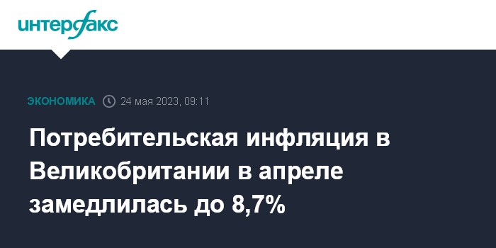 Потребительская инфляция в Великобритании в апреле замедлилась до 8,7%