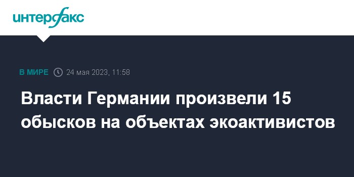 Москва. 24 мая. INTERFAX.RU - Сотрудники правоохранительных органов Германии совершили рейды по 15 объектам группы экоактивистов "Последнего поколения" в рамках расследования по фактам финансирования протестов, сообщает в среду Associated Press (AP) со ссылкой на прокуратуру Мюнхена.