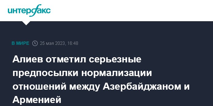 Москва. 25 мая. INTERFAX.RU - Президент Азербайджана Ильхам Алиев заявил о наличии серьезных предпосылок для нормализации отношений между Баку и Ереваном. Он сообщил об этом на заседании Высшего Евразийского экономического совета в Москве