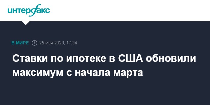Ставки по ипотеке в США обновили максимум с начала марта