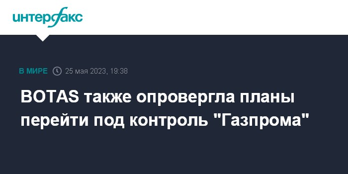 Москва. 25 мая. INTERFAX.RU - Турецкая государственная газовая компания BOTAS вслед за "Газпромом" опровергла сообщения турецких СМИ о возможности передачи ее в управление российскому концерну.