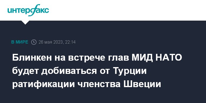"Мы очень ждем, когда и Турция, и Венгрия ратифицируют протоколы о вступлении Швеции очень скоро, до саммита в Вильнюсе (11-12 июля - ИФ)", - отметил представитель Блинкена.