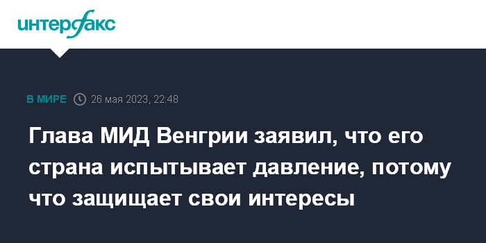 Глава МИД Венгрии заявил, что его страна испытывает давление, потому что защищает свои интересы
