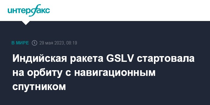 Москва. 28 мая. INTERFAX.RU - Индийская ракета-носитель GSLV в понедельник стартовала на геопереходную орбиту с навигационным спутником NVS-01, трансляцию пуска ведет Индийская организация космических исследований (ISRO).